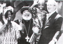 ![]() ![]() إفتتاح كنيسة السيدة العذراء بدار البطريركية القبطية بأديس أبابا قام الإيطاليون بتخريب كنيسة السيدة العذراء بدار البطريركية القبطية فى اديس أبابا اثناء إحتلالهم لأثيوبيا , وحدث أن الوقت هناك كان فترة عيد الغطاس المجيد فراس البابا صلوات تلك الليلة المقدسة التى أعتبرها الآباء عيد ميلاد الكنيسة , كما قام قداسته بصلوات القداس الإلهى فى كنيسة الملاك ميخائيل . الإجتماع الثانى لمؤتمر الكنائس اللاخلقيدونية فى القاهرة وكان موعد هذا المؤتمر الأسبوع الأول من يناير سنة 1966م وحضر الآباء الذين عرفوه فى اديس أبابا , وجاء عيد الميلاد المجيد وهم لا زالوا ضيوفه , ولما دخلوا الكاتدرائية المرقسية بالأزبكية فى تلك الليلة رجا منهم أن يحيطوا به داخل الهيكل المقدس أثناء الصلوات القدسية كل يلبس زيه بملابس التقديس , وطلب منهم أن يؤدى جزءاً معيناً من القداس الإلهى , ولم يترك أخوته الأساقفة القباط لنوال بركة هذا اليوم فأعطاه جزء من هذه الصلوات المقدسة , ولا يتصور القارئ مدى روعة القداس فضيوفنا صلى كل منهم بلغته وألحانه الخاصة وإنضمت هذه الألحان إلى الألحان القبطية والعربية فكان قداساً سمائياً يمثل تمجيد الرب الإله فى السماء بكل الأمم وبكل اللغات , واذيع هذا القداس على الهواء وتقول أيريس حبيب المصرى : " واذيع هذا القداس الإلهى الرهيب فى الإذاعة , ومما لا شك فيه ان المستمعين , سواء فى الكنيسة أو من الأذاعة , طارت نفوسهم إلى ذلك اليوم , يوم العنصرة الذى تكلم فيه الرسل بلغات مختلفة والأهم أنه خلال هذه الصلوات رنت فى الاذان كلمة رب الكنيسة : " ليكون الجميع واحداً ... ليكونوا هم ايضاً واحد فينا .. " أيريس حبيب المصرى - قصة الكنيسة القبطية - الكتاب السابع - ص 47 ![]() الإمبراطور هيلاسيلاسى الاول إمبراطور أثيوبيا كان يطلق علية " اسد يهوذا " بلغ من العمر 82 سنة وقد أقصى عن العرش فى 12 سبتمبر 1974 م بعد أن تمرد عليه الجيش بإنقلاب شيوعى